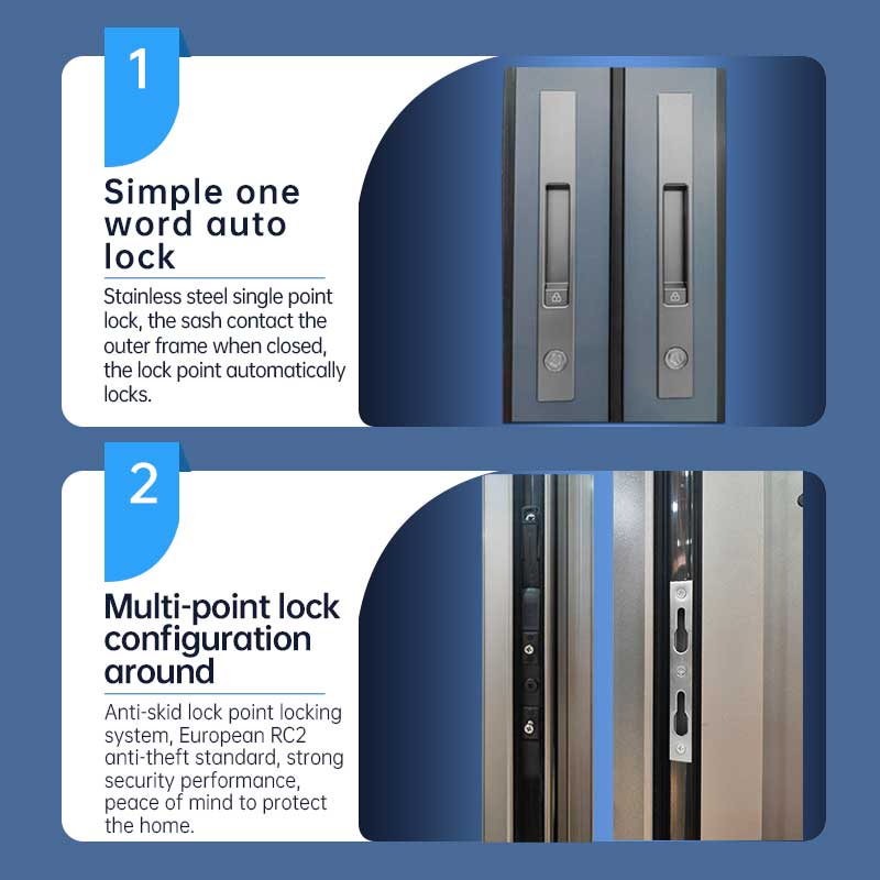 يعمل نظام القفل المبتكر المكون من 5 نقاط مع قفل اللمس أحادي النقطة المصنوع من الفولاذ المقاوم للصدأ على تعزيز الأمان، بينما يضيف قلب القفل المقاوم للأطفال طبقة إضافية من الأمان. القفل المكون من كلمة واحدة، المجهز بأقفال تعمل باللمس أحادية النقطة من الفولاذ المقاوم للصدأ، يعمل تلقائيًا عند إغلاق النافذة، مما يوفر آلية قفل بسيطة ومريحة. تجمع سلسلة Haoya Aluminium Hao Yue195 بين التكنولوجيا المتطورة والحرفية الدقيقة والالتزام بالسلامة، مما يجعلها الخيار الأمثل لإنشاء مساحات معيشة آمنة وأنيقة ومريحة.