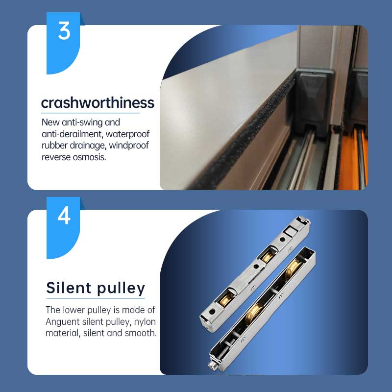 من خلال دمج تصميم غرفة العزل الحراري لعزل الصوت والعزل الحراري وكفاءة الطاقة، يخلق تصميم متساوي الحرارة العمودي حاجزًا حراريًا فعالاً، مما يقلل من استهلاك الطاقة الإجمالي. يتضمن الختم المتقدم للنافذة إطارًا للشاشة مقاس 60 مم، مما يوفر مظهرًا راقيًا وواسعًا. تتضمن الميزات القياسية تصنيفًا عاليًا لعزل الصوت يبلغ 5+14A+5، وذلك باستخدام شريط ألومنيوم مجوف أسود لعزل الصوت بشكل فعال مع طبقة مزدوجة من الزجاج المقسى المقاوم للتصادمات المعتمد من 3C. تضمن الشبكة المصنوعة من الفولاذ المقاوم للصدأ 304 بسمك 0.6 مم المتانة والوظائف المتقدمة مثل مقاومة البعوض ومنع الغبار.